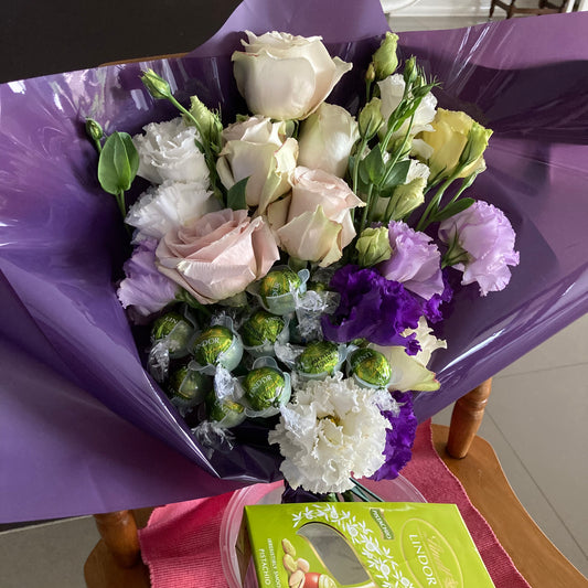 Enquire by email, sms or phoneFresh flower bouquet with chocolate